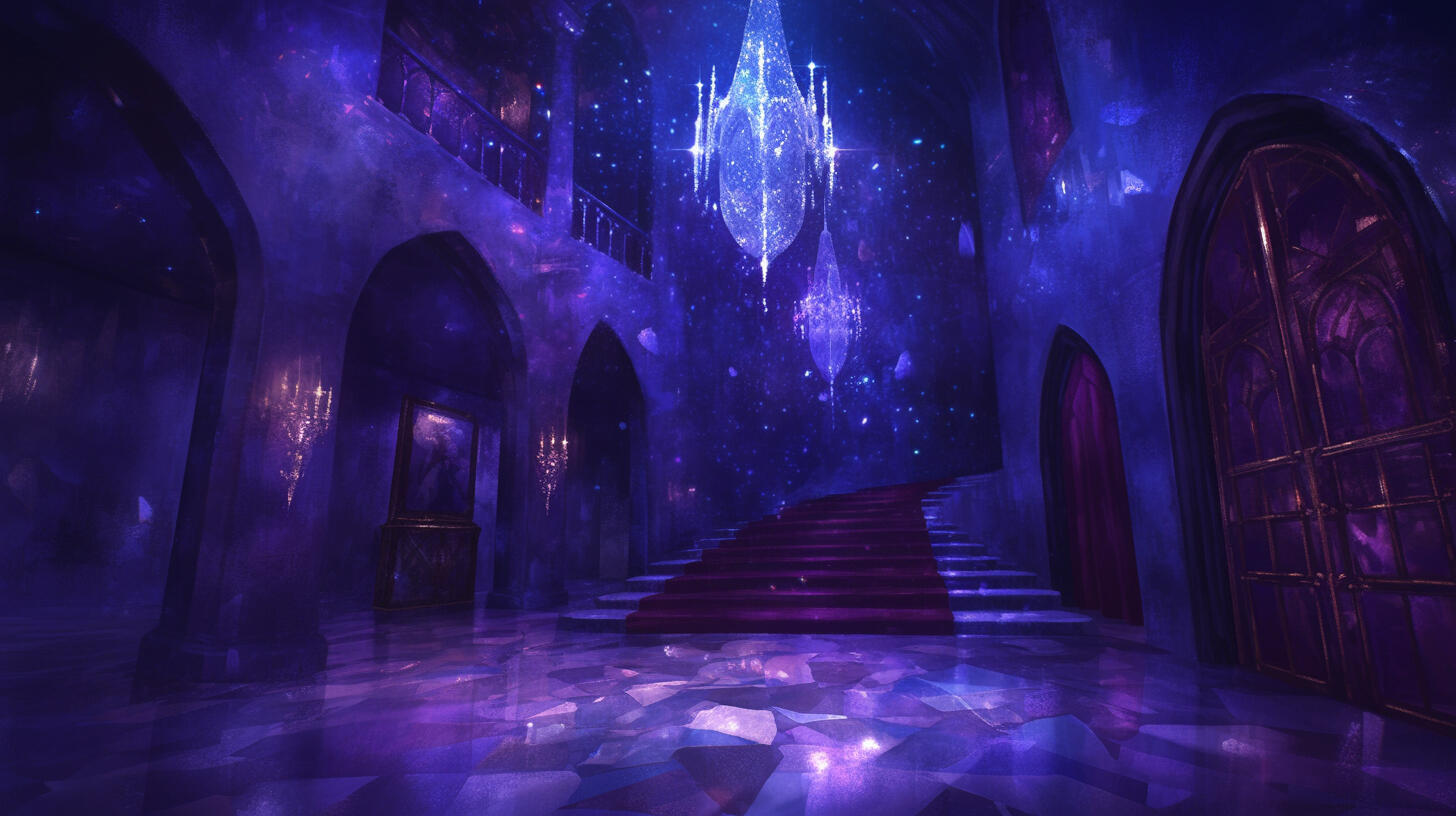 The Diamond Tower gleams with an otherworldly brilliance, its walls and floors cut from flawless crystal. The chambers are filled with refracted light, creating cascading rainbows that dance with every movement. The central hall features a grand chandelier of suspended diamond shards, each one reflecting a thousand points of light. The air is cool and still, exuding an aura of authority and clarity. Private chambers are sparsely furnished but exude elegance, with reflective surfaces that double as portals for light manipulation. A spiral staircase leads to the Observation Pinnacle, a room of complete transparency, offering an unobstructed view of the stars.